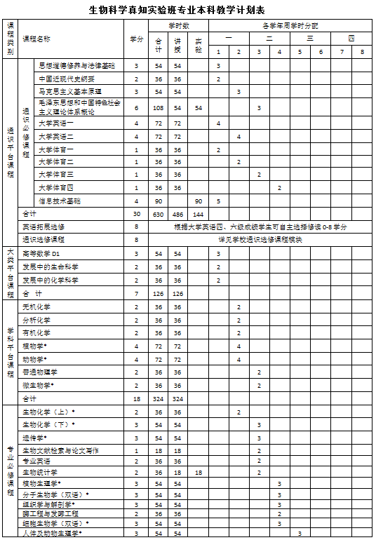 生物科学真知实验班专业本科培养方案