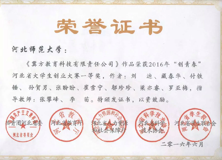 黄 静 张括川 刘晓丹 | 2012级 | 2015年 | 河北省一等奖 | 省教育厅 |