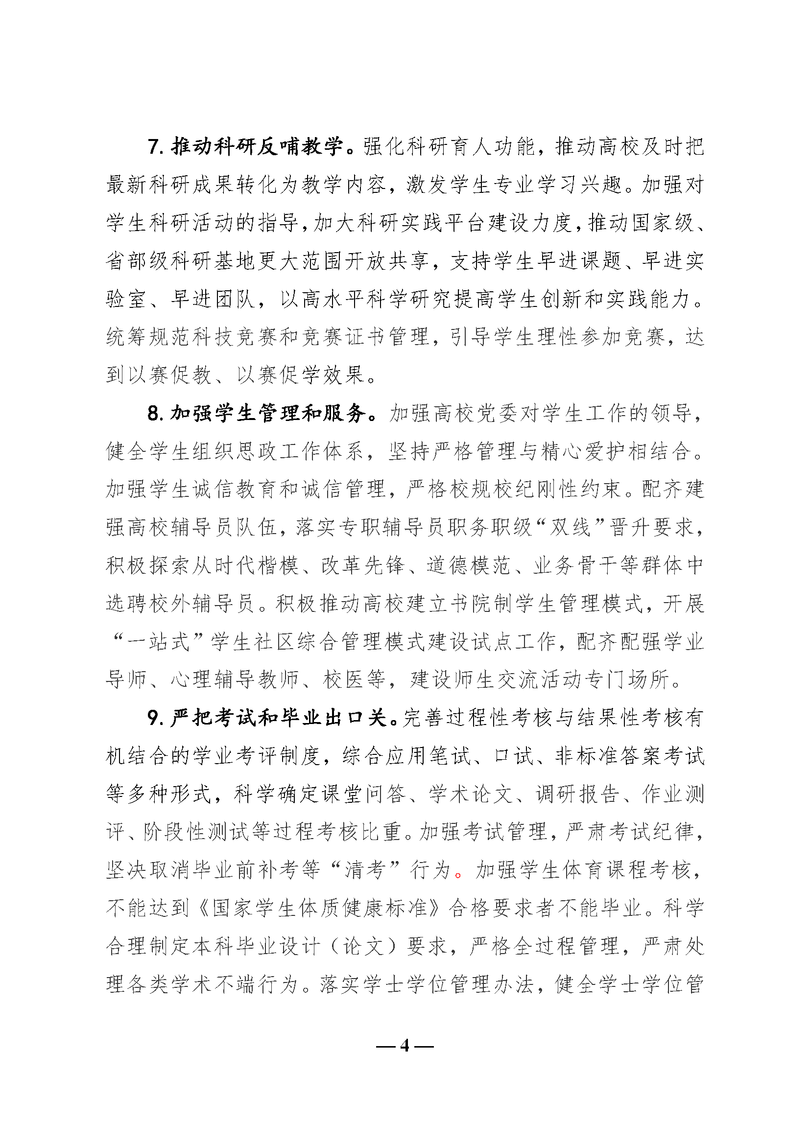 教育部关于深化本科教育教学改革全面提高人才培养质量的意见(教高〔2019〕6号