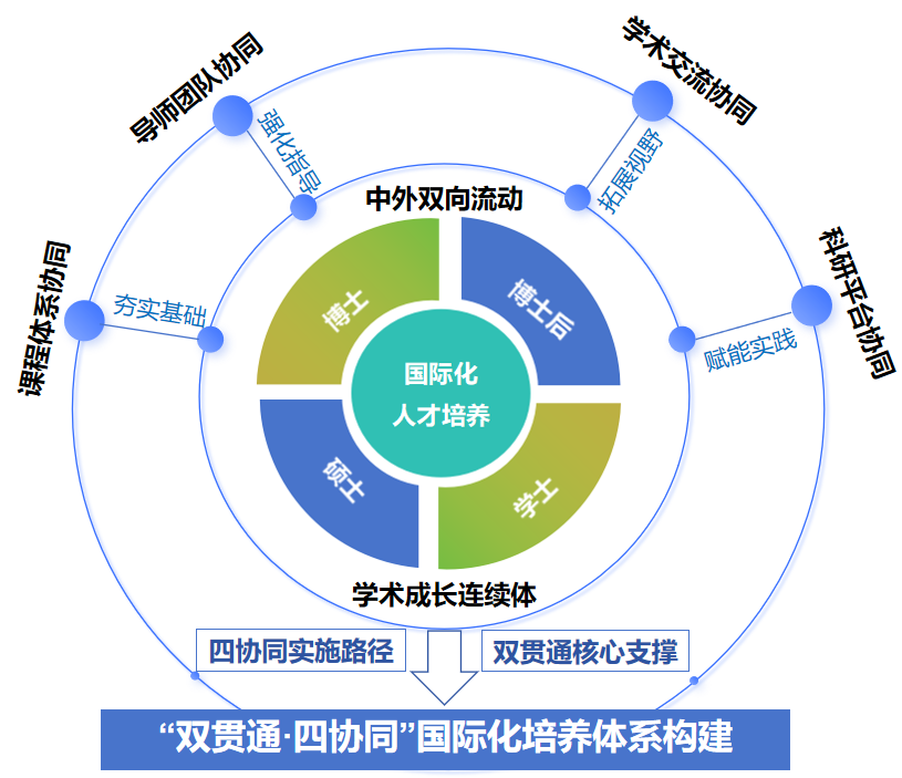 横向贯通:建立“引进-输出”双向流动机制,通过国际联合研究中心、国际科技合作项目等平台,制定专项政策支持鼓励海外研学、国际学术会议与访学交流,促进国内国际资源深度融合。