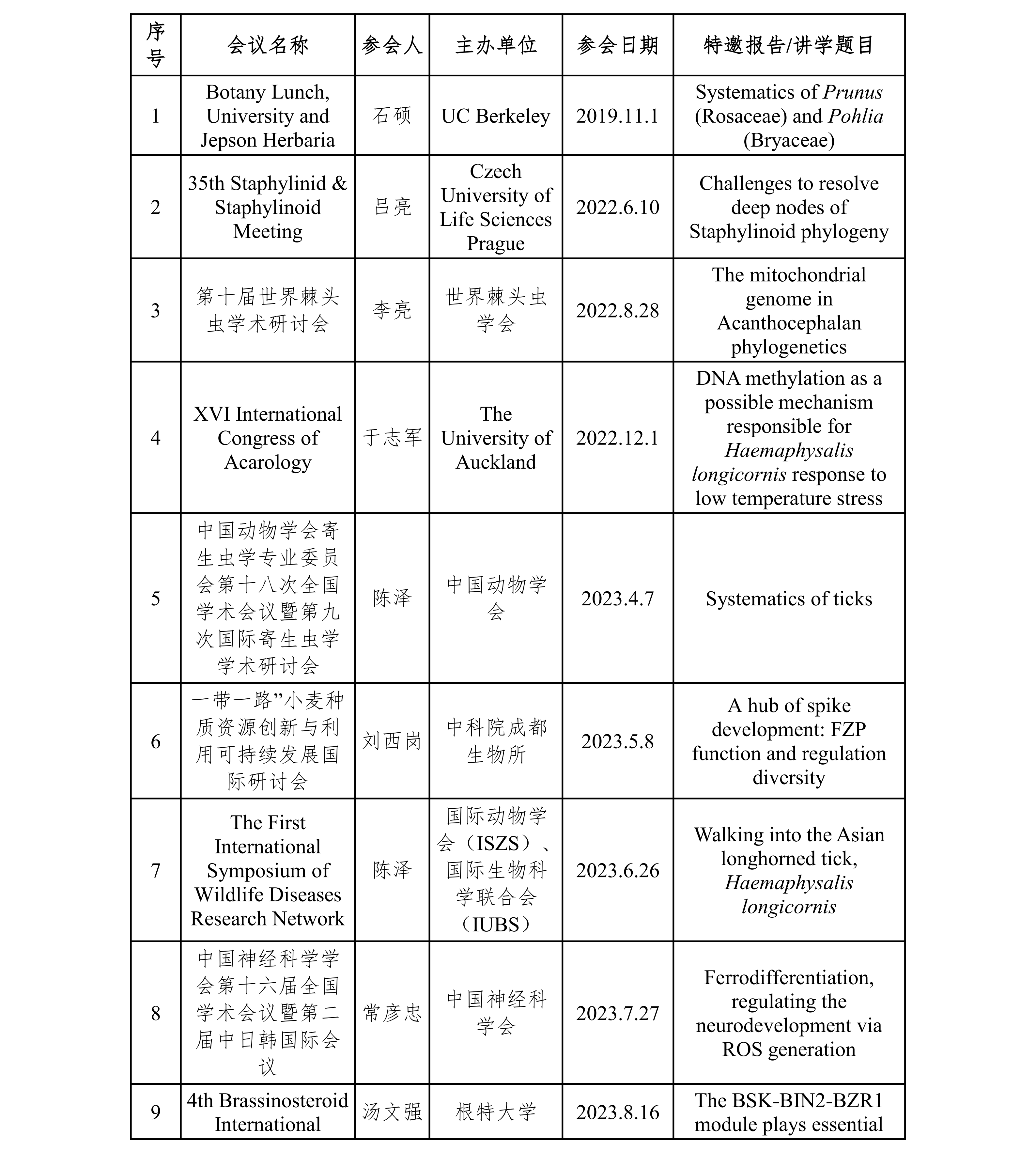 2.2.10 国内导师作国际学术报告清单(节选)