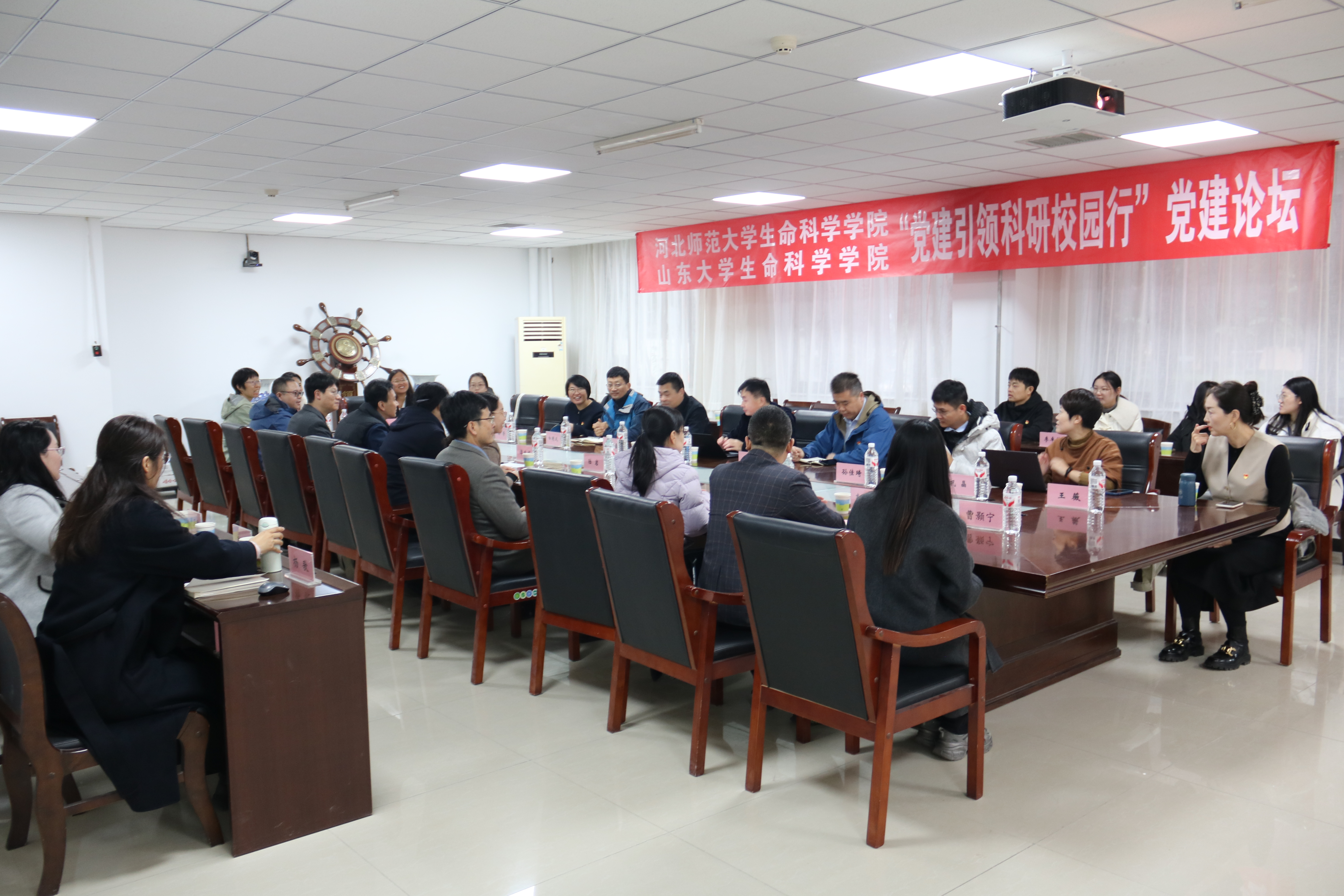 党建论坛上,王纪磊就山东大学久久小说 整体建设情况进行了交流,学院党委副书记陆岩介绍了学院党建“双创”工作建设举措与成效,细胞生物学党支部书记刘昕晔就全国党建工作“样板支部”建设经验作了分享,两院还就学院“十五五”规划编制工作进行了研讨。学术论坛上,山东大学徐芳教授、孙佳琦教授和河北师范大学赵红桃教授分别作学术报告,分享研究成果,进行学术探讨。教职工党支部书记论坛上,两院就教师党支部建设、黄大年式教师团队建设、学科发展进行了深入交流。学生工作论坛上,牟伉介绍了第四批全国党建工作“样板支部”培育创建单位山东大学久久小说 本科生党支部的建设举措,两院围绕思想政治教育、党团建设、学生管理和就业指导等方面进行深入探讨。